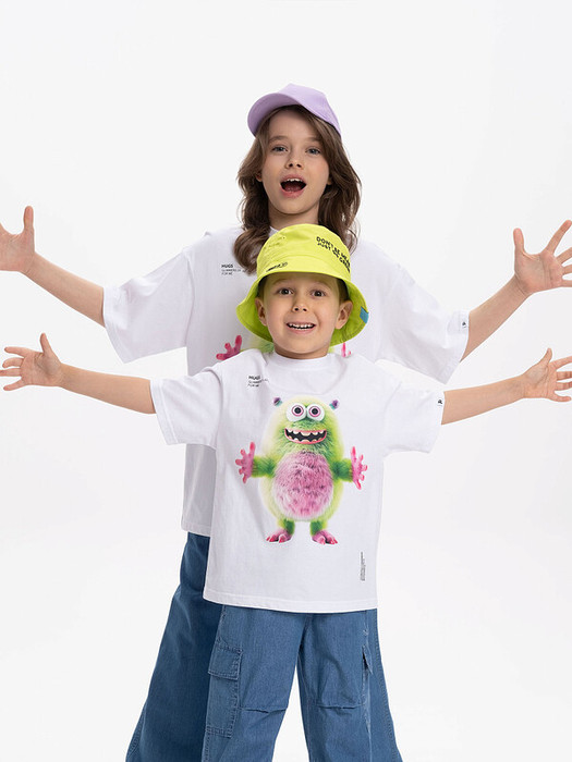 Детская футболка унисекс среднего объема. Прикольная нарядная футболка свободного силуэта со спущенным плечом не будет стеснять движений ребёнка. Вырез горловины отделан эластичной рибаной - голова не застрянет. Главная фишка футболки — яркий милый принт, изображающий персонажа, сгенерированного нейросетью (искусственным интеллектом). Это супермодный тренд! Принт эластичный и стойкий — без проблем переносит многочисленные стирки, не теряя своей яркости. На принте изображён забавный пушистый чудик (монстрик) зеленого и сиреневого цветов + надписи "обнимашки", "искры радости для меня" и "создано с помощью искусственного интеллекта". Широкая размерная сетка позволяет приобрести такую футболку как малышу в детский садик так и подростку. . Белые футболки подходят для носки летом, осенью и весной (демисезон), а также зимой .  Цвет товара на экране вашего устройства может отличаться от цвета изделия вживую.