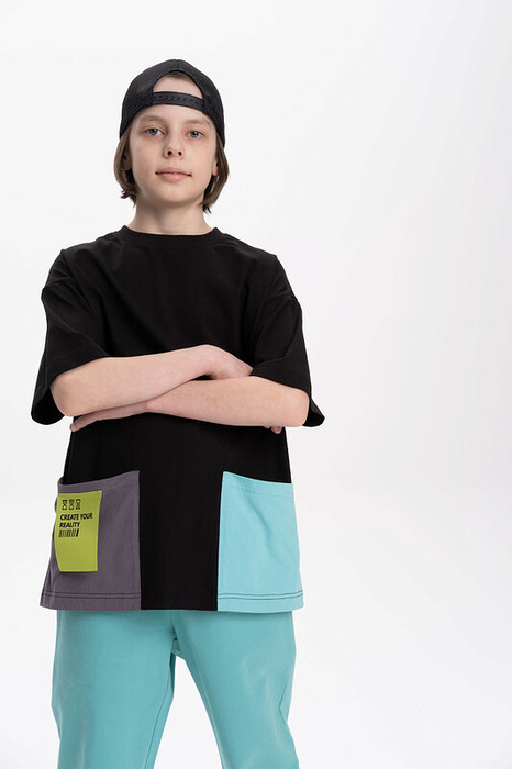 Детская футболка для мальчика оверсайз - это идеальный выбор для активного ребенка. Вырез горловины обработан эластичной тканью — она прекрасно держит форму, не растягивается, при этом ребёнку удобно надевать и снимать ее. По низу изделия большие накладные карманы для важных мелочей. На кармане нашивка с надписью. Перевод надписи "create your reality" - создавай свою реальность. Яркая спортивная футболка подходит как для маленьких мальчиков, так и для подростков. Её можно носить как летом, так и в холодное время года в качестве среднего слоя одежды. Помните о правильном уходе за изделием: рекомендуется стирать при температуре не выше 30 °C, без предварительного замачивания, с изнанки. Это поможет сохранить качество и цвет футболки на длительное время.