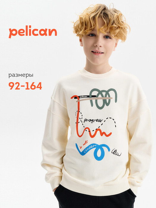 Совместные покупки Омск Детская одежда Джемперы, свитеры — 08.04 Pelican Толстовка для мальчиков BFN3388/1U Молочный