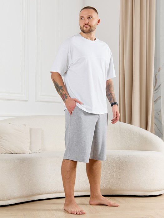 Шорты мужские из гладкокрашеного трикотажного полотна "пике", свободного покроя, на притачном поясе с эластичной тесьмой внутри, с карманами в боковых швах. Нижние срезы обработаны подгибкой.