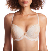 Бюстгальтер классической формы с формованной чашкой с гелевым Push-up. Детали изделия выполнены из эластичного кружева. Бретели эластичные, съемные. Центральная деталь декорирована бантиком из атласной ленты.