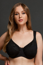 Бюстгальтер классической формы с формованной чашкой с небольшим Push-up по низу. Детали изделия выполнены из эластичного полотна и эластичного кружева. Бретели эластичные, съемные. Центральная деталь декорирована бантиком из атласной ленты.