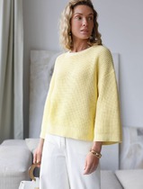 Вязаный джемпер из акриловой пряжи, переплетения гладь. Втачной длинный рукав. По низу рукава и изделия манжеты. Округлая горловина с бейкой. По переду косы.