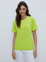Джемпер женский из эластичного хлопкового полотна - рибана. Приталенный крой. Круглый вырез горловины. Короткий втачной рукав.