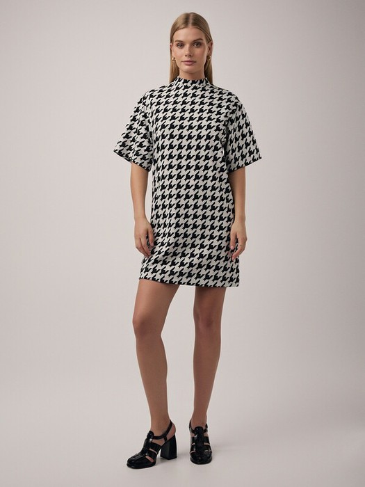 Платье из жаккардового полотна «в гусиную лапку» станет основной для повседневных образов, поможет создавать актуальные деловые аутфиты, а при должной стилизации выступит в роли модели для вечернего выхода в свет.