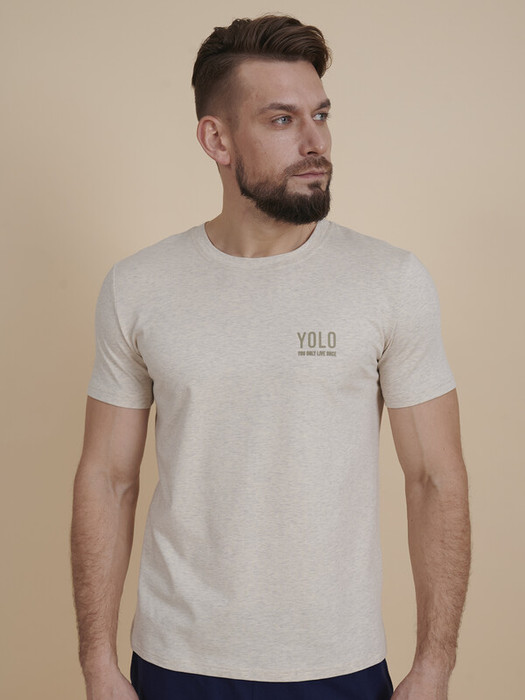 Стильная мужская футболка прилегающего силуэта с принтом. Укороченная футболка мужская подчёркивает достоинства фигуры. Рукава средней длины с глубокой проймой обеспечивают комфорт и свободу движения. Модель неприхотлива в уходе. Трикотажная футболка по переду украшена стильным лаконичным принтом с объёмными буквами, жизнеутверждающая аббревиатура YOLO (от англ. you only live once — "Ты живёшь только один раз"), надпись переводится: "Живём один раз". Принт качественный и стойкий — без проблем переносит многочисленные стирки. В составе ткани преобладает высококачественный хлопок — футболка мягкая, приятная на ощупь и позволяет коже дышать. Эластан помогает изделию надолго сохранить первоначальную форму. Модель представлена в трёх цветах: серая футболка, чёрная, бежевая. Размерная линейка: M (46-176); M (46-188); L (48-176); L (48-188); XL (50-176); XL (50-188); XXL (52-176); XXL (52-188); 3XL (54-188). Майка идеальна для мужчин, молодых парней, подростков. Базовая футболка универсальна, отлично подходит для работы, учёбы, спорта, прогулок, отдыха, а также для дома и сна. Легко сочетается с различными брюками и шортами. Её можно носить летом, зимой и в демисезон (осенью и весной). Футболка с принтом мужская — это прекрасный подарок брату, мужу или папе на любой праздник. Выбирайте нужный размер по таблице размеров на фото. Цвет товара на экране вашего устройства может отличаться от цвета изделия вживую.