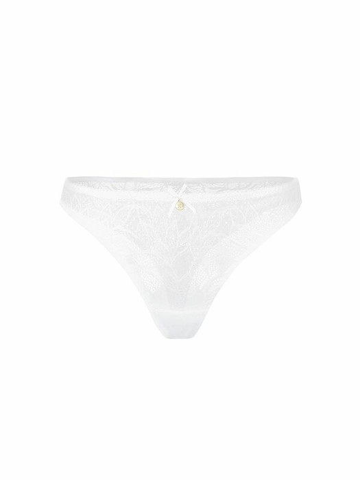 Кружевные трусики модели Brazilian со средней посадкой. Нежные резинки по талии и срезу ножек спереди. Кружевное полотно по срезу ножек сзади. Ластовица из хлопка. Декоративная металлическая подвеска с заглавной буквой бренда