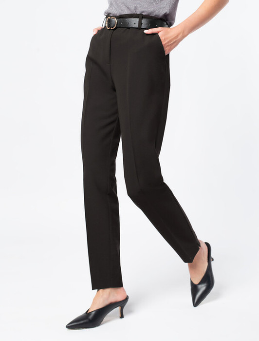 Брюки-дудочки выполнены из эластичной поливискозы, гарантируют непревзойдённый комфорт и формоустойчивость, хорошо тянутся и не мнутся. В таких брюках будет комфортно даже в помещении с отоплением. Благодаря наличию вискозы в ткани тело будет всегда дышать.  Стрелки визуально вытягивают силуэт. Посадка на талии. Брюки дополнены двумя боковыми карманами и двумя карманом сзади.