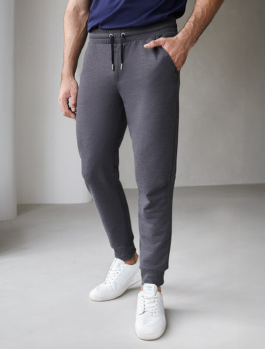 Брюки-джоггеры выполнены из эластичного футера. Изделие с двумя боковыми и одним задним карманом украшено логотипом бренда. Посадка регулируется шнуром, продетым в широкий эластичный пояс. Мягкий и плотный материал хорошо пропускает воздух, а наличие ПЭ в составе способствует формоустойчивости и легкости изделия. Сочетается в костюме с худи U49.039
