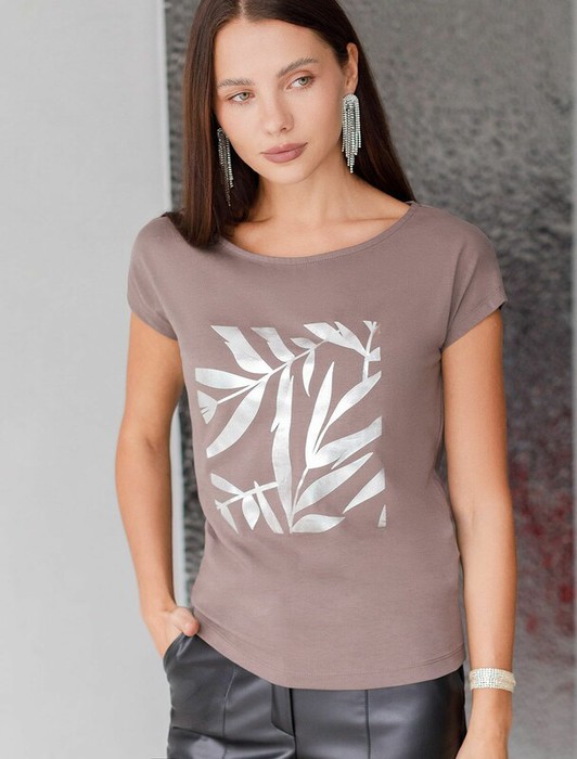 Совместные покупки Омск Женская одежда Футболки — 09.04 Vilatte Футболка D49.134 кофейный_листики
