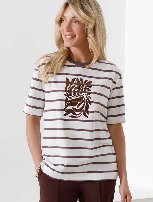 Совместные покупки Омск Женская одежда Футболки — 09.04 Vilatte Футболка D49.145 белый-кофе_цветок