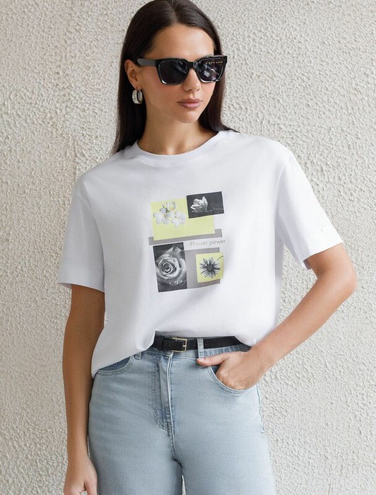 Совместные покупки Омск Женская одежда Футболки — 09.04 Vilatte Футболка D49.145 белый_flower_power