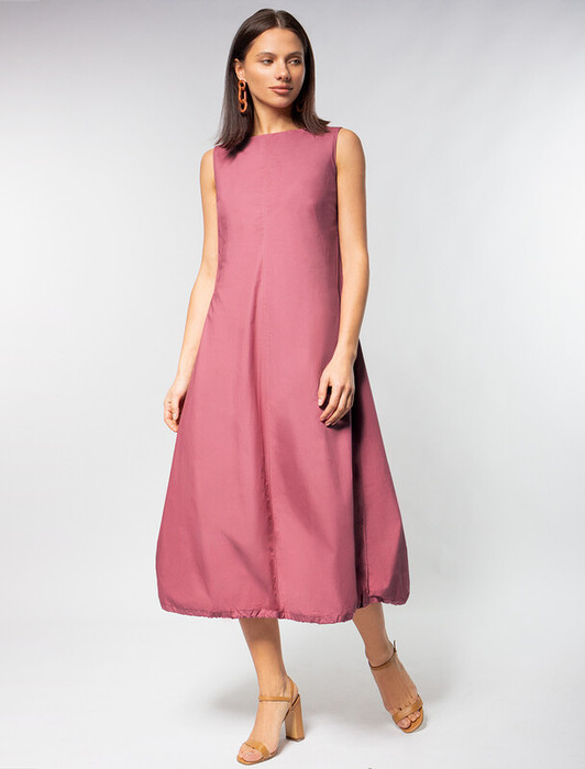 Совместные покупки Омск Женская одежда Платья — 21.04 Vilatte Платье-баллон на кулиске внизу из плотного поплина D22.200 темно-д