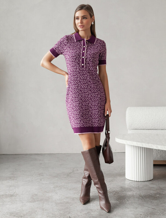 Совместные покупки Омск Женская одежда Платья — 09.04 Vilatte Платье жаккардовой вязки с кашемиром D32.110 пурпурный