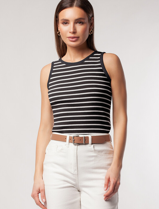 09.04 Vilatte Топ из трикотажа в широкий рубчик D43.223 черный с белым