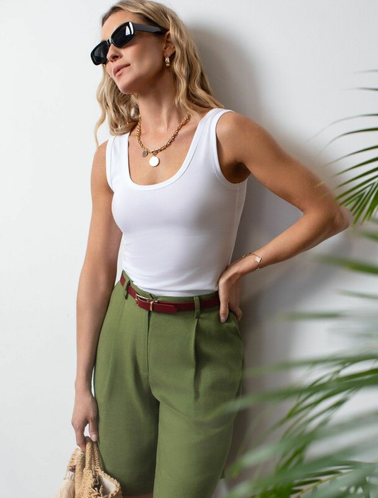 Совместные покупки Омск Женская одежда Майки, топы — 09.04 Vilatte Топ облегающий из премиального хлопка с эластаном D43.238 белый