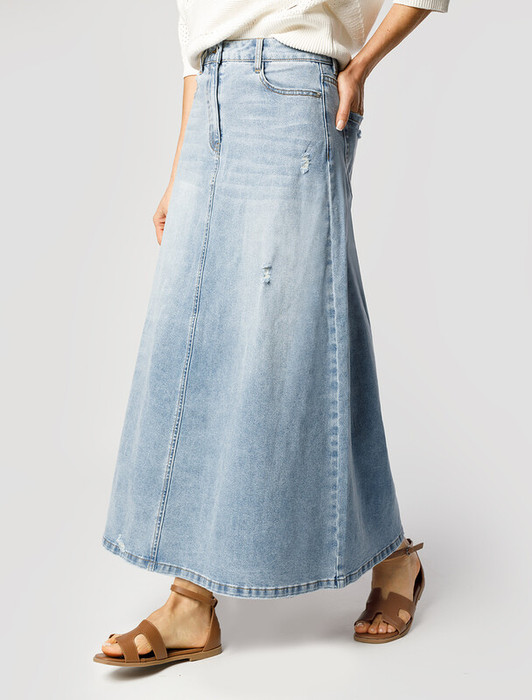09.04 Vilatte Юбка А-силуэта из эластичного денима D56.118 голубой