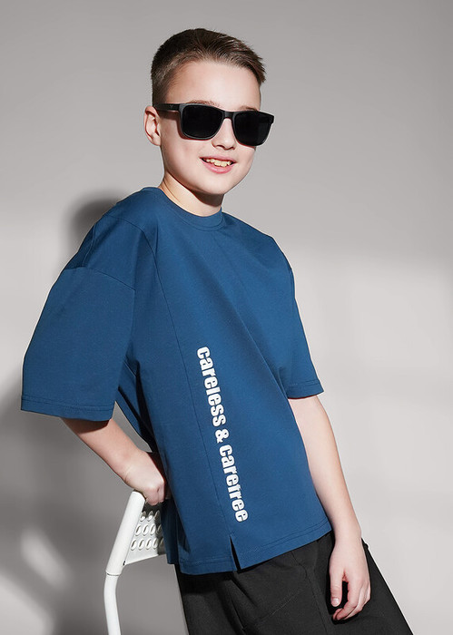 Футболка из 100 % хлопка для подростка — сочетание комфорта и современного дизайна. На переде выполнен стильный рез, дополненный актуальным принтом.
