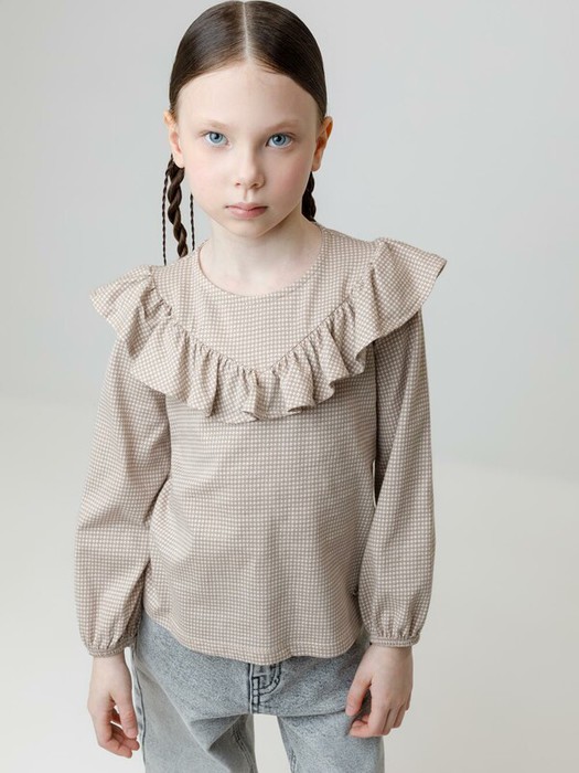 12.04 Crockid блузка для дев КР 302177/бежевый,гусиная лапка к625