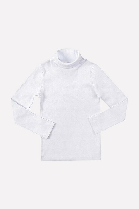 Однотонная детская водолазка из эластичного трикотажа кашкорсе. Длинные рукава. Высокая горловина с отворотом.