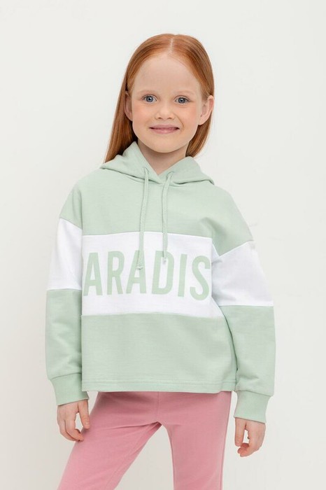 Толстовка с капюшоном для девочки из петельчатого футера . Принт выполнен из высококачественных текстильных красителей.