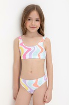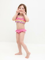 Раздельный купальник для девочки. Топ на регулируемых бретелях и плавки на эластичной резинке. Внутри подклад. Украшен воздушными оборками.