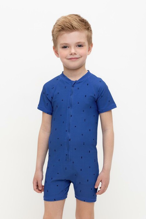 Купальник для мальчика. Застегивается спереди на замок. На замке предусмотрена защита для подбородка. На груди и спинке принт. Оригинальный принт выполнен из стойких гипоаллергенных красителей.