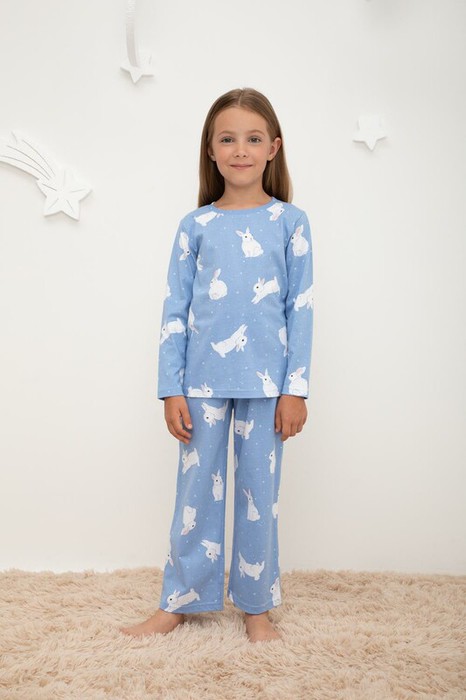 12.04 Crockid пижама дет К 1622/зайки на снегу на голубом