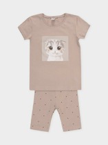 Трикотажная пижама для девочки с футболкой и велосипедками. Футболка с короткими рукавами изготовлена из гладкого трикотажа супрем. Велосипедки с резинкой в поясе выполнены из эластичного материала в рубчик. Оригинальная набивка и принт выполнены из стойких текстильных гипоаллергенных красителей. Изделие сохраняет цвет и форму после многократных стирок. Все трикотажные полотна производятся в соответствии с нормами швейцарского сертификата ЭкоТекс.