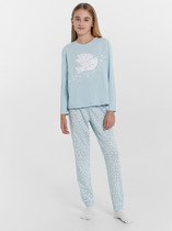 Трикотажная пижама для девочки с футболкой и велосипедками. Удлинённая футболка изготовлена из гладкого трикотажа супрем. Велосипедки выполнены из эластичного трикотажа в рубчик. Оригинальная набивка и принт выполнены из стойких текстильных гипоаллергенных красителей. Изделие сохраняет цвет и форму после многократных стирок. Все трикотажные полотна производятся в соответсвии с нормами швейцарского сертификата ЭкоТекс.