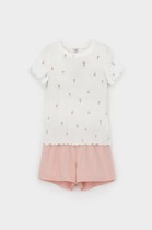 Трикотажная пижама из натурального хлопка для комфортного сна и отдыха. Рубашка на пуговицах с короткими рукавами и свободные шорты с мягкой эластичной резинкой в поясе. Набивной рисунок выполнен из стойких текстильных гипоаллергенных красителей. Изделие сохраняет цвет и форму после многократных стирок. Все трикотажные полотна производятся в соответствии с нормами швейцарского сертификата ЭкоТекс.