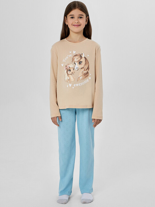Комплект домашней одежды для девочек с мотивирующей надписью «Ты великолепна» создан для комфортного отдыха и спокойного сна. Пижама состоит из лонгслива и брюк, выполненных из натурального хлопка, нежного к коже и гипоаллергенного.