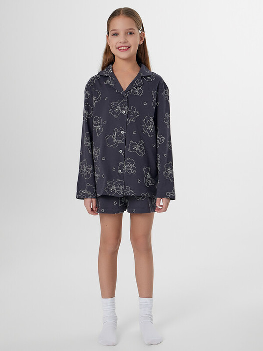 Пижама для девочек с милым принтом — это уютный комплект для сладкого сна и отдыха. Он состоит из рубашки свободного кроя и удобных шортов из мягкого хлопка.