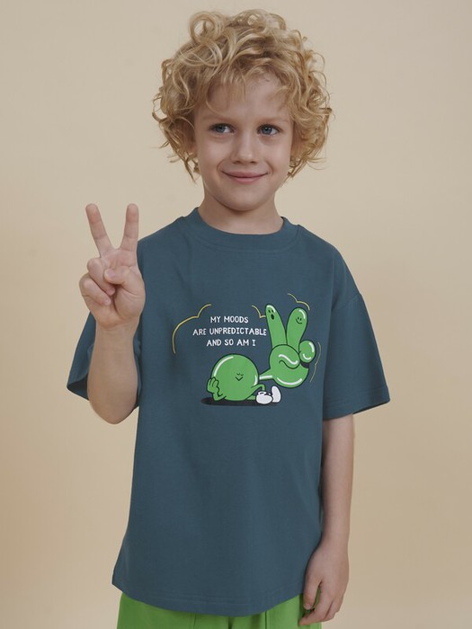 Модель представлена в цвете морской волны. Синяя футболка для мальчика - красивый вариант на любой выход, по переду украшена надписью "My moods are unpredictable and so I am" – перевод "Мои настроения непредсказуемы, как и я сам".  Свободная футболка для мальчика подростковая рассчитана на возраст садика и школы. Размерная линейка: 1 (86); 2 (92); 3 (98); 4 (104); 5 (110); 6 (116); 7 (122); 8 (128); 9 (134); 10 (140); 11 (146).