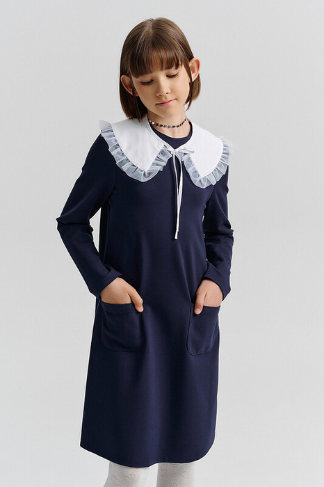Идеальное платье для школы и не только! Стильное платье А-силуэта с длинными рукавами — настоящая находка для гардероба школьницы. Удобный крой не сковывает движений, а продуманные детали делают образ аккуратным и практичным.