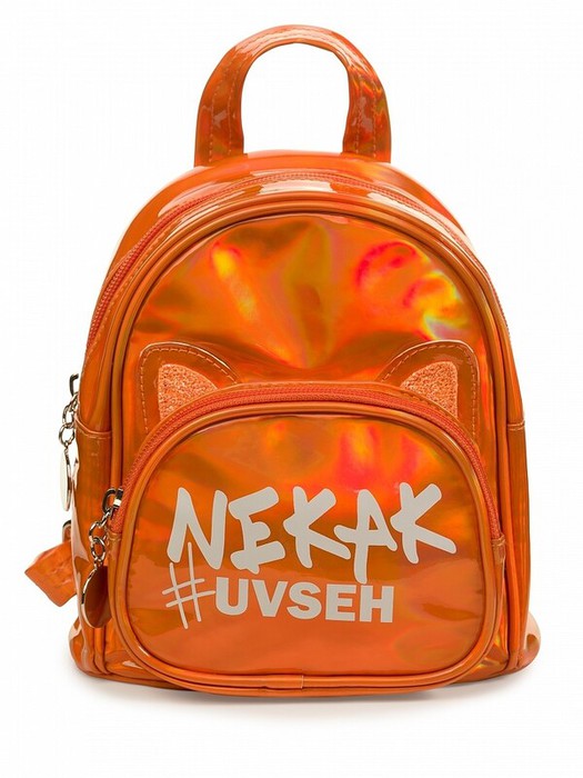 Рюкзак из искусственной лакированной кожи с голографическим отливом. Хорошо держит форму. В рюкзаке 1 отделение и 1 внешний карман. Лямки регулируются по длине. Декор пришивные ушки с голографическим глиттером и яркий принт. Перевод НЕКАК #УВСЕХ.
