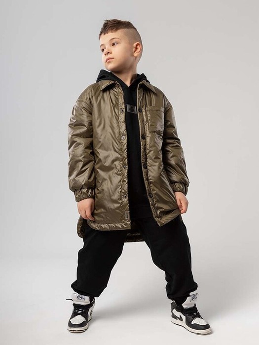 Демисезонный детский удлиненный бомбер. Материал куртки Fitsystem, влагозащитный, воздухообменный и ветрозащитный. Внутри изделия легкий гипоаллергенный современный утеплитель Hetta micro, надежная защита от холода при минимальном объеме, сохраняет упругость и форму после многократных стирок. Детали: рукава на манжетах, накладной карман, карманы в боковых швах, застежка - кнопки. Материал верха: Fitsystem 100% полиэстер, утеплитель Hetta micro 100 г/кв.м, подкладочный материал кулирная гладь 100% хлопок
