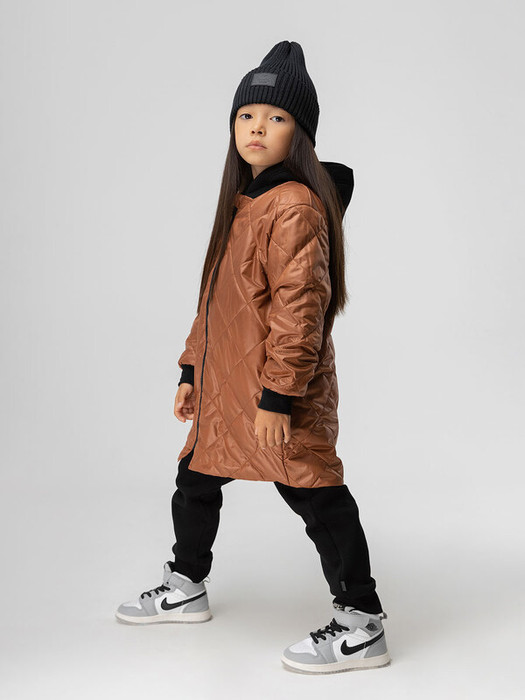 Стеганый удлиненный бомбер для детей. Детали: рукава на манжетах, карманы в боковых швах, застежка - молния. Внутри изделия легкий гипоаллергенный современный утеплитель Hetta micro, надежная защита от холода при минимальном объеме, сохраняет упругость и форму после многократных стирок. Материал верха: Fitsystem 100% полиэстер, утеплитель Hetta micro 100 г/кв.м, подкладочный материал кулирная гладь 100% хлопок