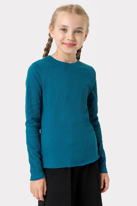 Джемпер прилегающего силуэта. Горловина обработа обтачкой из основного полотна. Рукав втачной длинный. Низ изделия и рукавов обработан микрооверлоком.