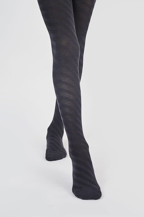 Гладкие колготки с рисунком в виде диагональной полоски, выполненной перекидкой.