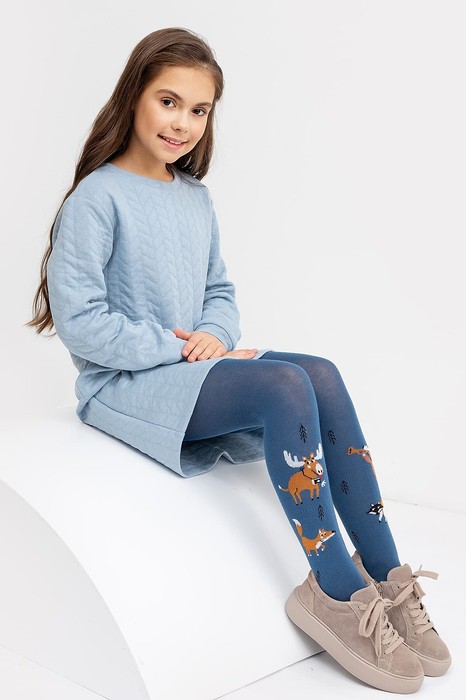 Колготки гладкие с рисунком в виде зверей.