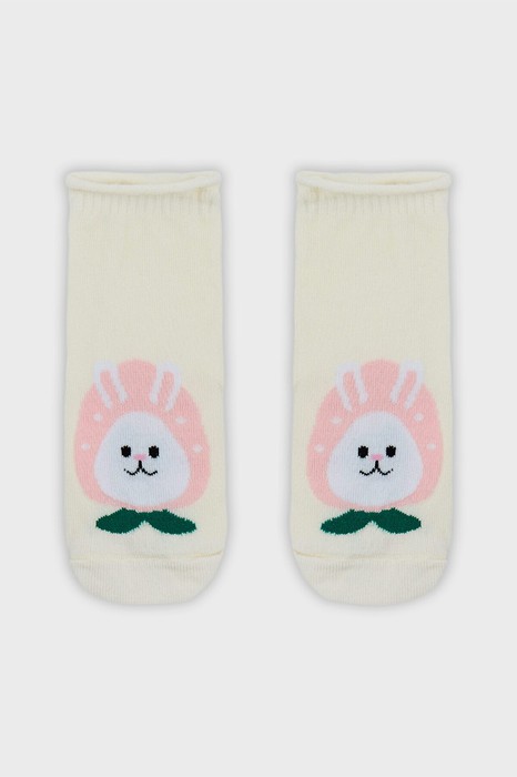 рис.3245 Детские классические носки без борта, с рисунком в виде зайчика и силиконом на стопе.