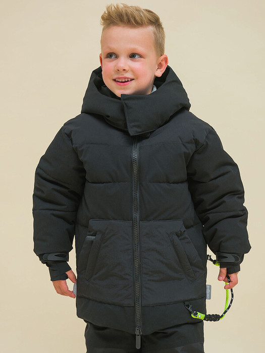 Пуховик зимний для мальчика из мембранной ткани. Изделие выполнено из материалов двух видов, разных по фактуре. Основная ткань матовая, тактильно приятная. Кокетки переда, спинки и накладные карманы выполнены из гладкой курточной ткани. Сочетание материалов с разной фактурой — один из актуальных трендов. На внешнюю поверхность материала нанесена водоотталкивающая пропитка (DWR), она задерживает грязь и влагу снаружи — ребёнок не промокнет. Также есть дополнительная пропитка на внутренней стороне ткани. Куртка прямого оверсайз-силуэта подходит для любого типа фигуры. Капюшон с двумя швами, что обеспечивает анатомически правильную форму и комфортную посадку по голове. Капюшон не отстегивается, набит утеплителем, предусмотрена регулировка объема эластичными шнурами с пластиковыми стопперами. По низу рукавов манжета, которая дополнительно застёгивается силиконовой патой на липучке (велкро) — удобно регулировать объем. Внутри рукава ветрозащитная манжета из трикотажного полотна с прорезью для большого пальца, которая позволяет придерживать рукав при надевании перчаток. Центральная застёжка на тракторную молнию с двумя пуллерами — удобно садиться. Тканевый стоппер защищает подбородок от зажима молнией. Фиксирующая строчка предохраняет планку от «заедания» в процессе застёгивания. Зимний пуховик тёплый — дополнительно, для защиты от ветра и холода, центральная молния закрыта внутренней ветрозащитной планкой. По низу объём изделия регулируется эластичным шнуром со стопперами. Пуховик на мальчика спереди дополнен карманами-кенгуру с магнитными застёжками — ребёнку просто и быстро открывать и закрывать даже в варежках. Карманы внутри утеплены мягким флисом. Также есть дополнительные карманы на молнии с планкой — удобно пользоваться. Пуховик в модном стиле стритвир - для тех, кто понимает в моде. На левом кармане оригинальный декор — навесной шнур кислотного цвета. Он крепится с помощью двух карабинов за петельки из основной ткани в кармане и боковом шве куртки. В каждой куртке нейм-лейбл! Ребёнок не потеряется и не потеряет куртку! На спинке и в боковых швах расположены светоотражающие элементы — безопасность в тёмное время суток. Изделие неприхотливо в уходе. Пуховик однотонный, без принта. Куртка выполнена из полиэстера (+мембраны), вставки из нейлона — она тёплая, не промокает, легко стирается, быстро сохнет, сохраняет отличную форму и цвет надолго. Подкладка из мягкого, тёплого и дышащего флиса (по стану, внутреннему воротнику и в капюшоне). В рукавах подкладка из полиэстера — благодаря этому ребенку легко надевать куртку, руки не путаются в рукавах. Куртка выполнена в универсальном чёрном цвете. Её просто комбинировать с различными брюками. Размерная линейка: 3 (98); 4 (104); 5 (110); 6 (116); 7 (122); 8 (128); 9 (134); 10 (140); 11 (146). Куртка зимняя оверсайз идеальна для маленьких мальчиков дошкольного и младшего школьного возраста, а также подростков. Рекомендуемый температурный режим: не ниже минус 30 градусов. Утеплитель: экопух. В рукавах дополнительный слой тонкого синтепона. Модель подходит для носки в детский сад, школу, для прогулок и отдыха. Куртка на мальчика— стильный и практичный подарок для сына или внука на любой праздник.