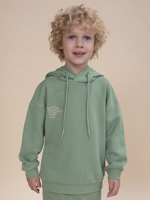 Изделие выполнено в однотонном зеленом цвете. Худи для мальчика подростка оверсайз спереди декорировано принтом: "Be present, listen to music, be with you BF, do things that make you happy #enjoy!" - перевод "Живи в моменте, слушай музыку, встречайся со своим лучшим другом, делай то, что делает тебя счастливым #наслаждайся!". На спинке надпись: "Feeling good always trendy" - перевод "Хорошее настроение всегда в тренде (модно)". Толстовка оверсайз рассчитана на возраст садика и школы. Понравится малышам, школьникам и подросткам. Размерная линейка: 1 (86); 2 (92); 3 (98); 4 (104); 5 (110); 6 (116); 7 (122); 8 (128); 9 (134); 10 (140); 11 (146).