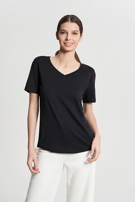 Футболка V-neck, полуприлегающего силуэта, фигурный низ.