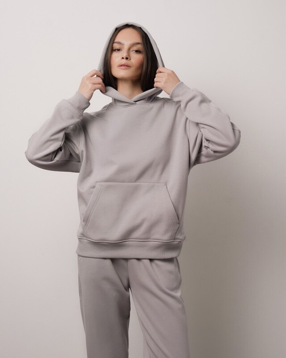 Худи свободного кроя с капюшоном, спущенное плечо, карман кенгуру.