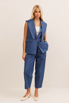 Джемпер свободного кроя с поясом и манжетами, круглый вырез. Декор вышивка на спинке. Брюки расклешенные к низу, карманы в боковых швах