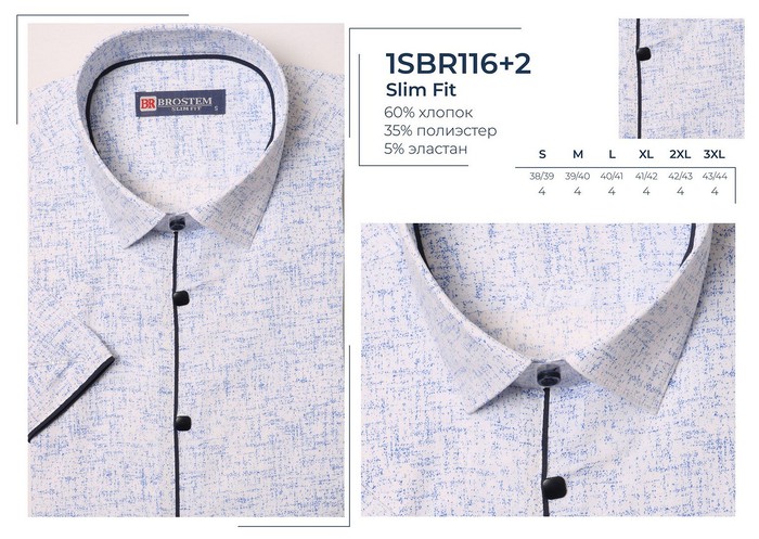 1SBR116+2s** Сорочка мужск.притал. кор. рукав. BROSTEM, шт