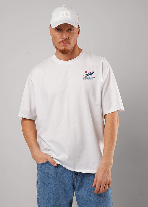 Футболка свободного кроя с округлой горловиной выполненная из хлопкового полотна, с акцентным принтом на груди. Данная модель подойдет к джинсам или шортам.