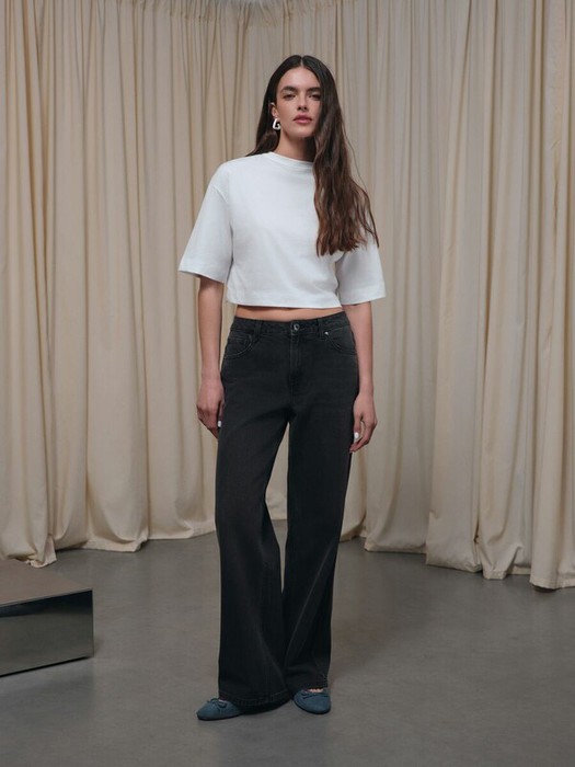Чёрные джинсы свободного прямого кроя из 100% хлопка станут комфортным и эффектным дополнением расслабленного стиля.  Особенность модели – петля для крепления аксессуаров, которая поможет персонализировать ваши джинсы и создать уникальный образ.